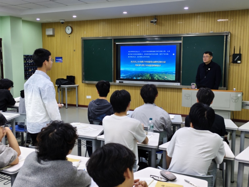 课堂上,何保华以大家熟知的数字应用为切入点,带领学生全景式触摸数字中国建设的生动图景,明晰智能制造专业的时代价值。